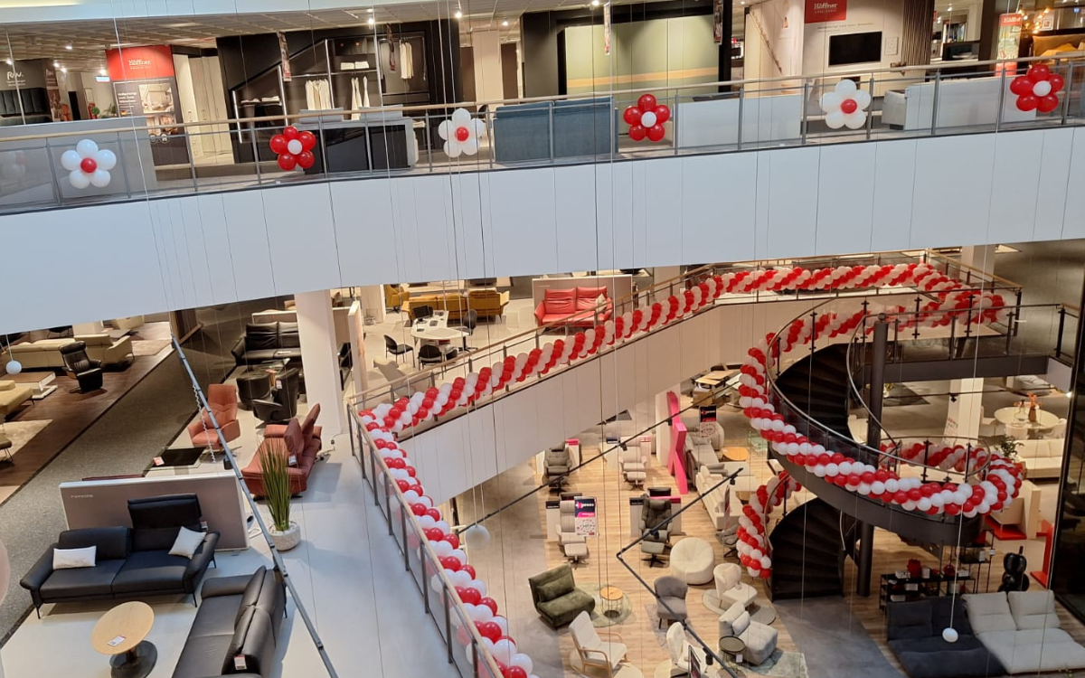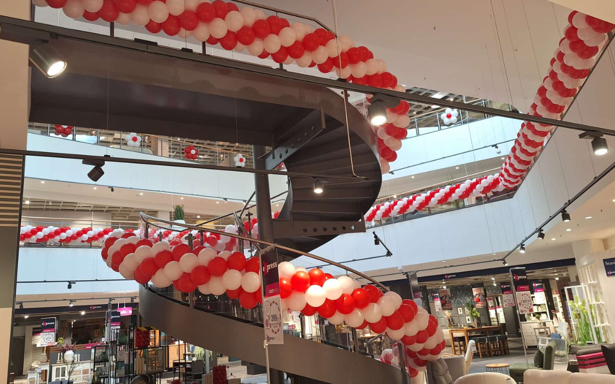 Mit unserer professionellen Ballondekoration verleihen wir jedem Anlass das gewisse Etwas. Ob Jubiläum, Neueröffnung, Aktionswoche oder Umbau – wir setzen Einkaufszentren, Filialen und große Veranstaltungsbereiche eindrucksvoll in Szene.